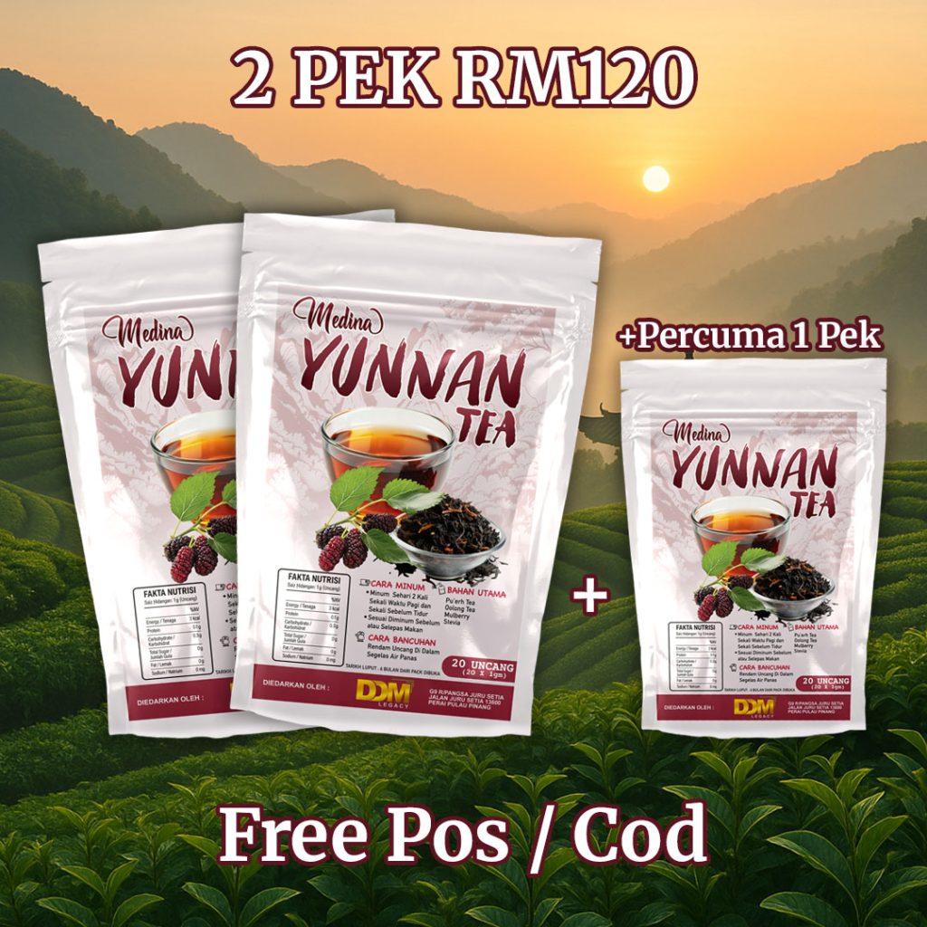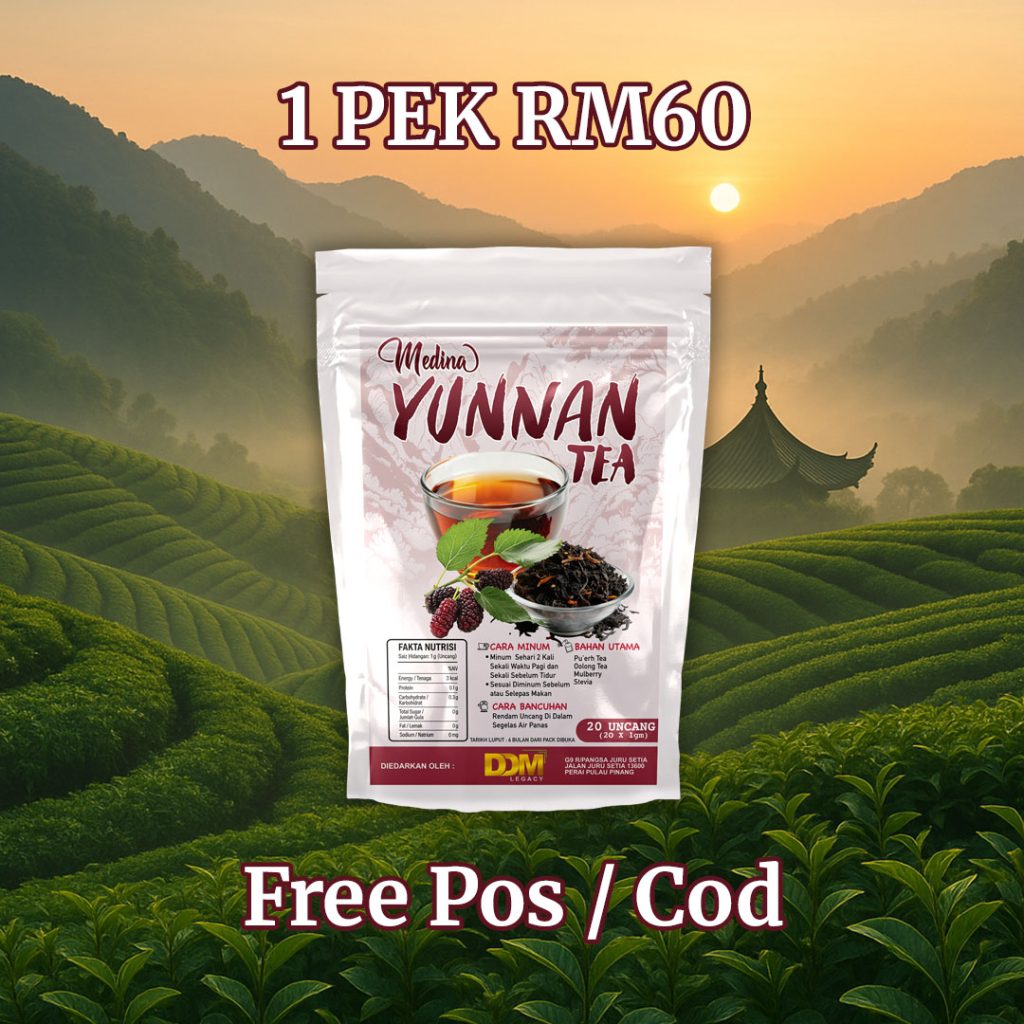 Yunnan Tea gabungkan 3 herba terbaik dunia: Pu’erh, Oolong & Mulberry.